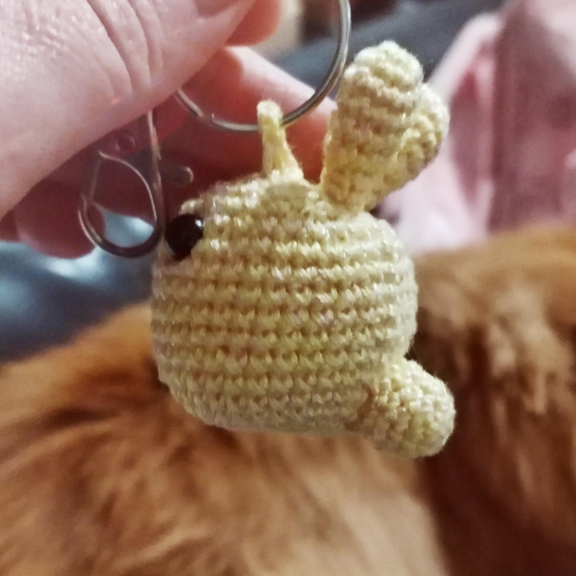 Petit lapin tout mignon en porte clé réalisé au crochet avec passion et amour. Il apportera de la douceur à vos clefs, à votre sac, n'importe où vous l'accrocherai en fait.