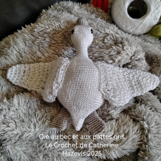Elle mesure du bec à la queue 14 cm, et d'une aile à l'autre 19 cm. Elle a été réalisée en 7h.