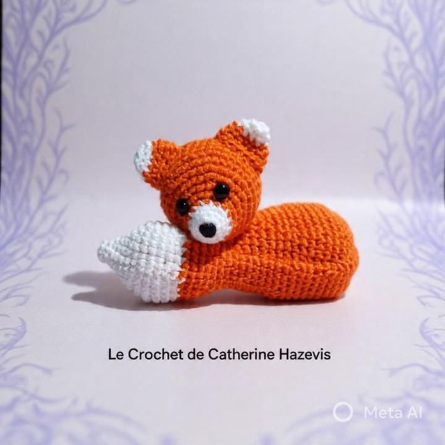 Renard couché réalisé au crochet avec passion et amour de 10 cm de long environ.